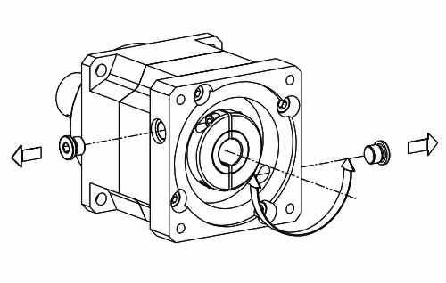 松開行星減速機(jī)法蘭中的密封螺釘(或取下塞子)。然后轉(zhuǎn)動(dòng)夾緊環(huán),使裝置在行星減速機(jī)夾緊環(huán)中的螺栓的頭部坐落剛?cè)∠氯雍髽?gòu)成的孔的前面。